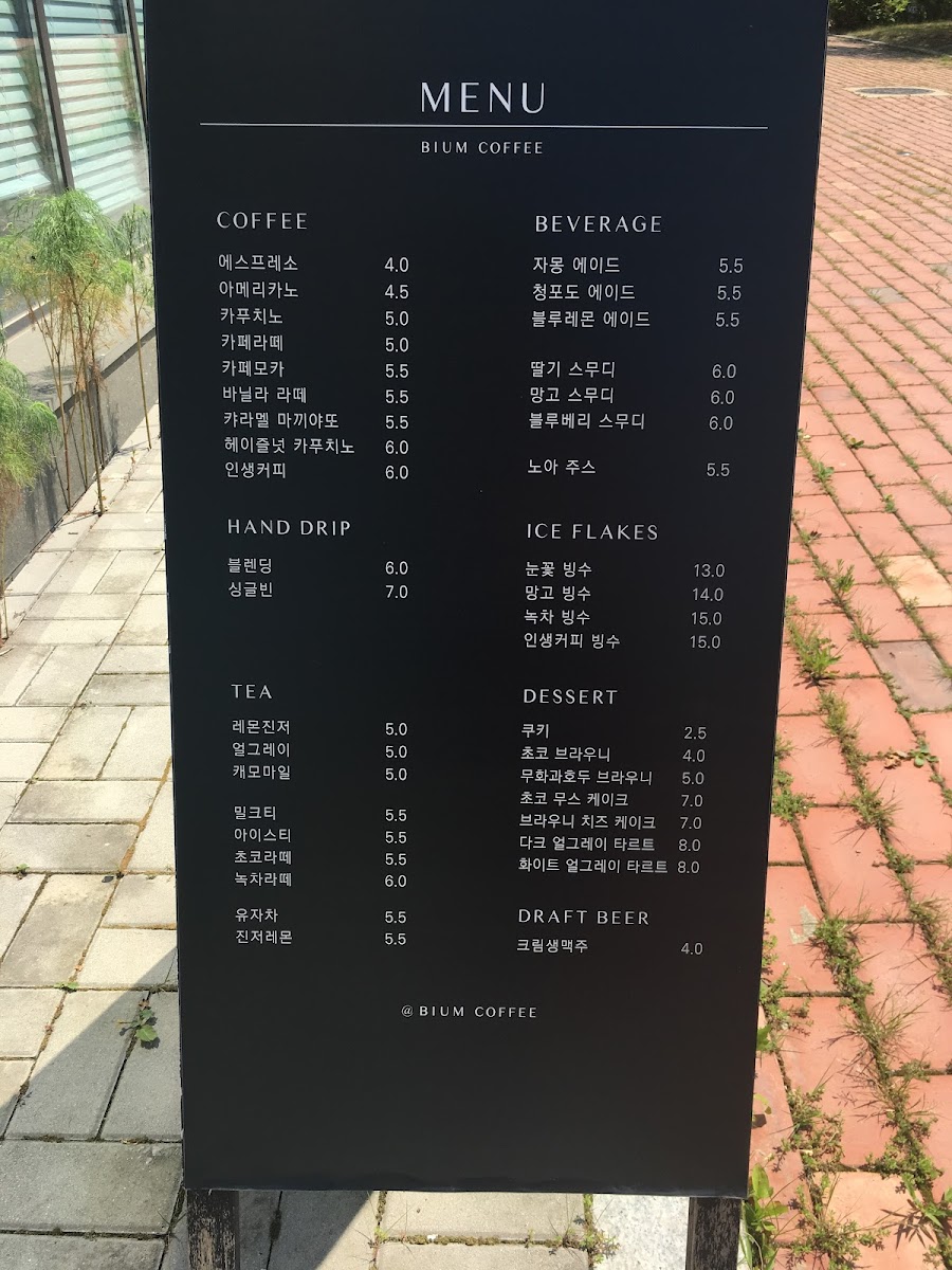 Welcome to BIUM COFFEE (비움 커피), a gem nestled in the serene surroundings of Yangju-si, South Korea. This modern café boasts a chic ambiance, making it a perfect stop for coffee enthusiasts and families alike. Highlights of the menu include the Dark Earl Grey Tart, celebrated by many for its exquisite flavor, and refreshing smoothies that complement the robust hand-dripped coffee offerings. The spacious interior allows for a relaxed experience, ideal for those unwinding after a hiking adventure in the nearby hills.